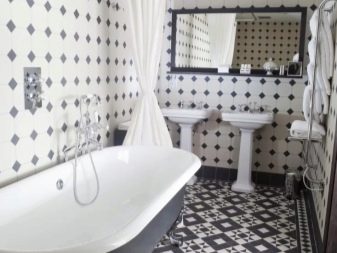 - Diagonal styling looks no less interesting. To do this, you will need white and black rectangular tiles of the same size. To prevail white color, try to lay one dark tile on a diagonal through two light.