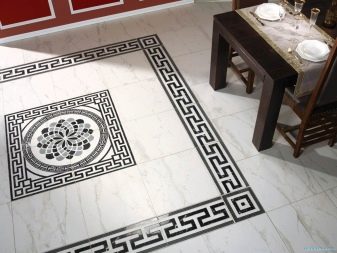 Not everyone can decide on a monochromatic snow-white coating. However, the trends of the design world offer us a good solution. White floor tiles with black inserts - a universal design option for any room. The classic color combination fits any style and setting. It can be a minimalistic, simple interior or an elegant classic.Depending on the design chosen, the black and white floor will look great.
