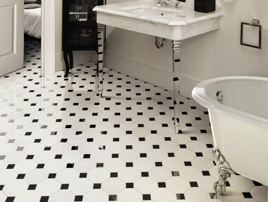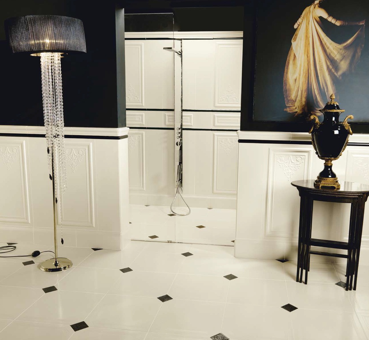 In order to make the most effective use of white tile with black inserts, apply some tricks: