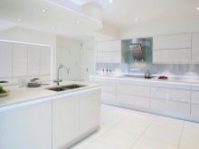 If the tile in the kitchen has a shade, then An important condition is its harmonious combination with furniture and other finishes. The tile of pure white color is combined with any colors, and the bright furniture and decor will look great on its background. Exquisitely looks in the kitchen embossed version of ceramics.