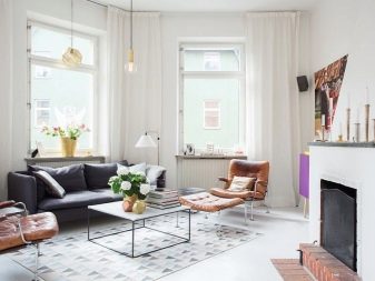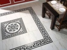 The English classics with characteristic furniture of light shades, an indispensable fireplace, a comfortable rocking-chair and a bay window always admire the amazing combination of elegance and comfort. A simple light floor will be able to complement the English idyll. To keep the style you need to use matte, not glossy finish. It is also possible the combination of white tiles with a dark ornament.
