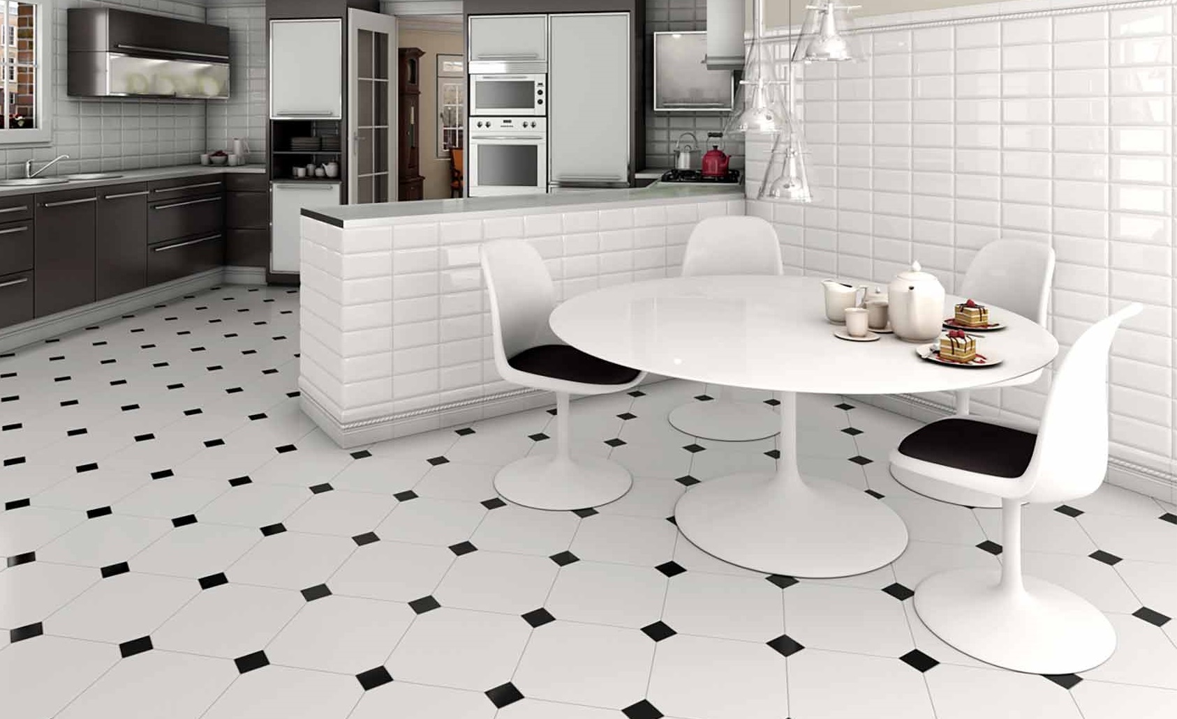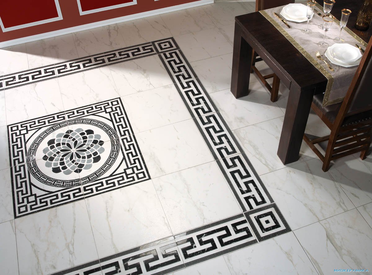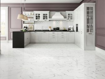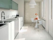 The classic version is white tile alternating with small black squares, as well as white marbled tiles. By the way, these options are suitable not only for the kitchen, but also look great in the lobby, in the bathroom or hallway.