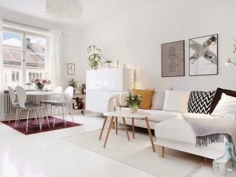 Scandinavian interior in the bedroom or living room is based on cool colors. The abundance of shades of gray, characteristic of Scandinavian minimalism, just need to be combined with the most light-colored flooring and walls, otherwise the interior will bring a melancholy mood. The combination of a beige, brown and milky-white shade in a floor covering will add to the Scandinavian interior heat and softness.