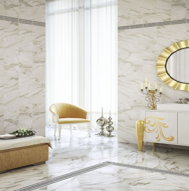 In order for the room not to have a “hospital” look, designers recommend using decorative elements in the form of a colored border with an ornament together with white ceramics; Many people prefer white shades of pure white tile: milky, ivory, ivory, cream shade and many other options.