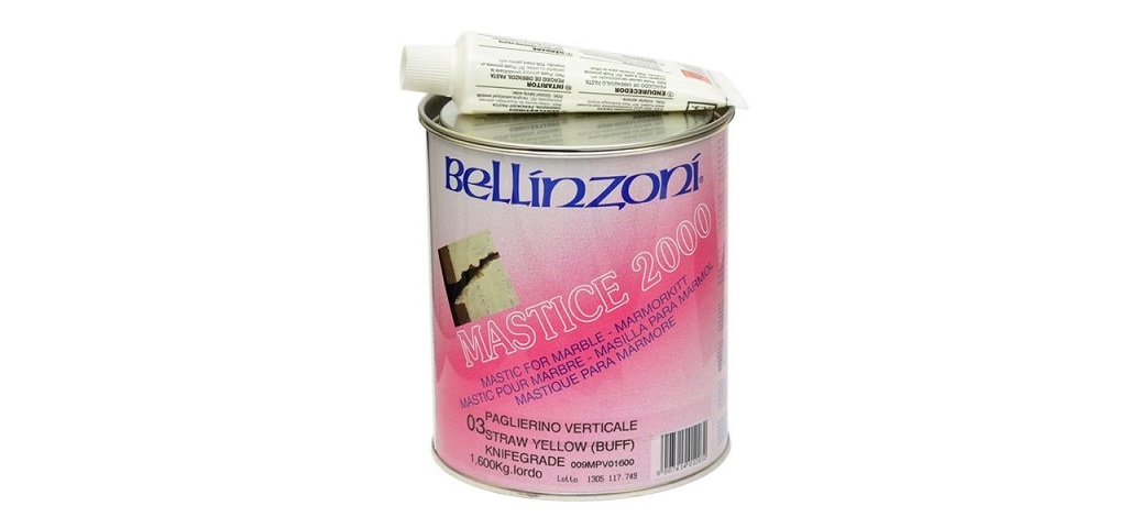 This product is a two-component and contains polyester mastic and a catalyst. Therefore, it allows you to glue marble, granite, mosaic and create decorative elements and inlay. Since the mixture hardens in 2-5 minutes, each element should be carefully and carefully glued.Bellizoni Mastic is made in thirteen color variations, each of which corresponds to a certain natural stone.