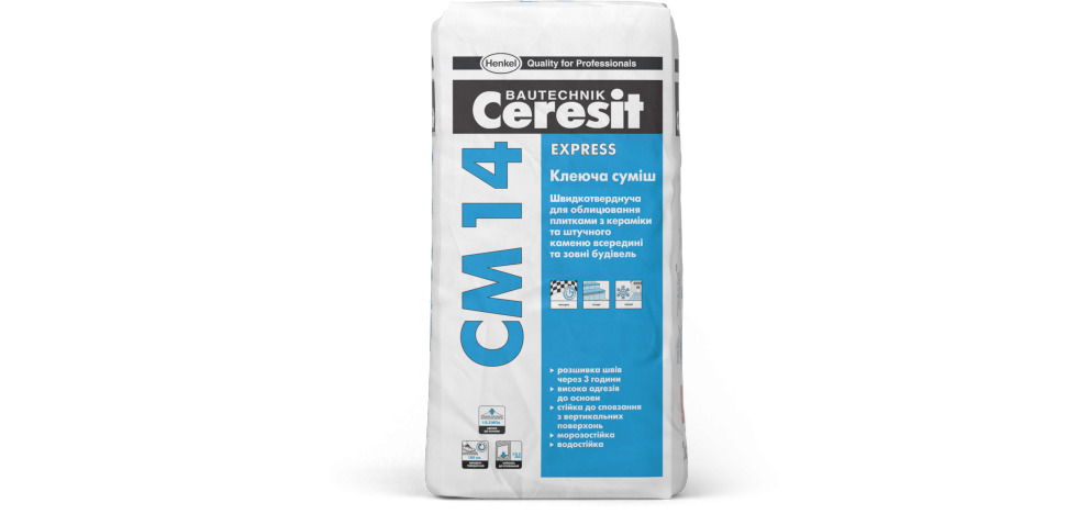 This quick-hardening adhesive is created for both internal and external work on the laying of ceramic plates and porcelain tiles up to 30x30 cm. The product has a high level of adhesion, water resistance and cold resistance. It is great for bases made of concrete, brick, limestone.