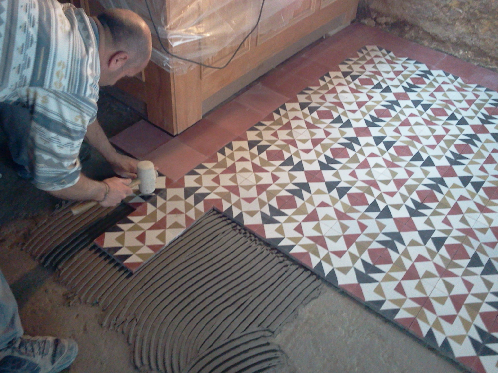 The sequence of laying cement tile is similar to the principle of action with natural stone, however Work should be done only when the rest of the repair is over. First you need to make sure that the surface is leveled and dried.