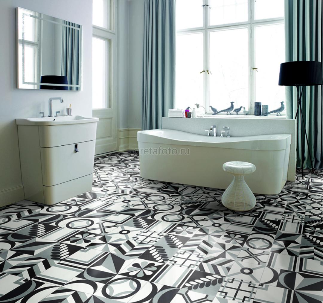 If you do not really like the decoration with patterns, you can choose monophonic tiles of two or more colors, laying out the floor with it. Get a very original design. Monochrome coating will look more succinctly and strictly.