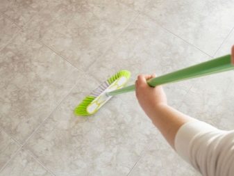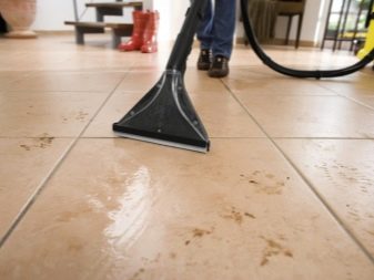 The first thing to do is to remove dust from the tile with a brush or vacuum cleaner.. This should be done immediately, because the tile absorbs moisture very quickly, and with it all the dirt.This is the preparation of a new tiled floor for thorough wet cleaning.