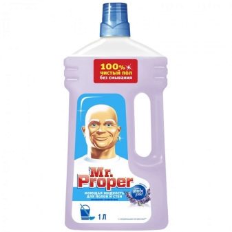- "Mister proper". Universal detergent that can be used in the bathroom, in the kitchen. Perfectly copes with light pollution of the floor of porcelain.
