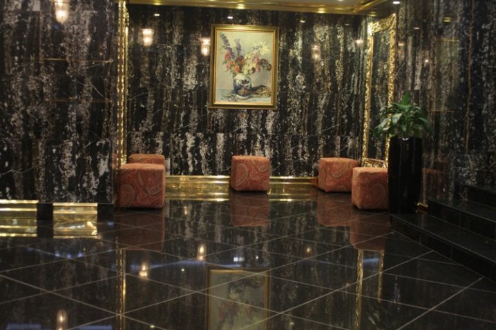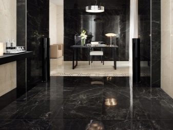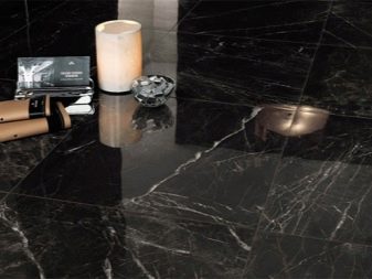Polished tiles made of black natural or artificial marble will emphasize the wealth of the owners of the house.