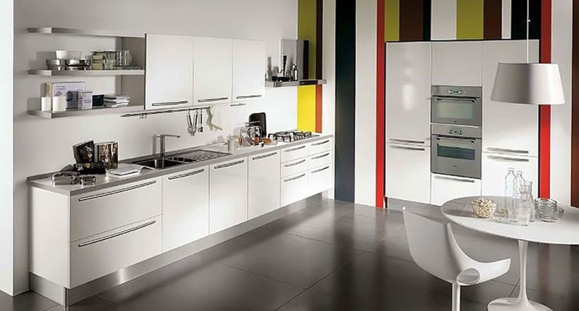 If you want to create a baroque setting, the golden finish with fancy handles in the kitchen and equipment will be a luxurious addition.