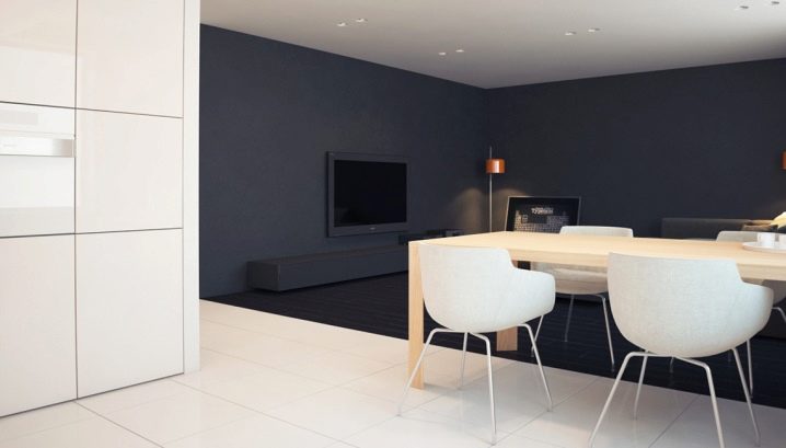 Sharp zoning in a contrasting color, where half of the room is finished in coal-gray, and the other half - with white finishing material, is a new word in interior design.