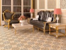 If you choose a multi-colored tile, then you should prefer simple patterns in the form of small rhombuses or twisted lines. And quite often with the help of multi-colored tiles in the classics on the floor fit imitation of the carpet, around which monochrome basic elements are used.
