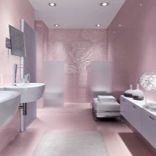 - Bathroom, decorated in the style of Provence, complemented by floral "carpet" on the floor, which is supported by a curb on the walls.