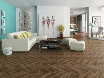 In classic interiors, the flooring imitating parquet laid in the form of various patterns looks good. Also, the floor will be quite original, decorated with tiles with coloring for various minerals, for example, malachite.