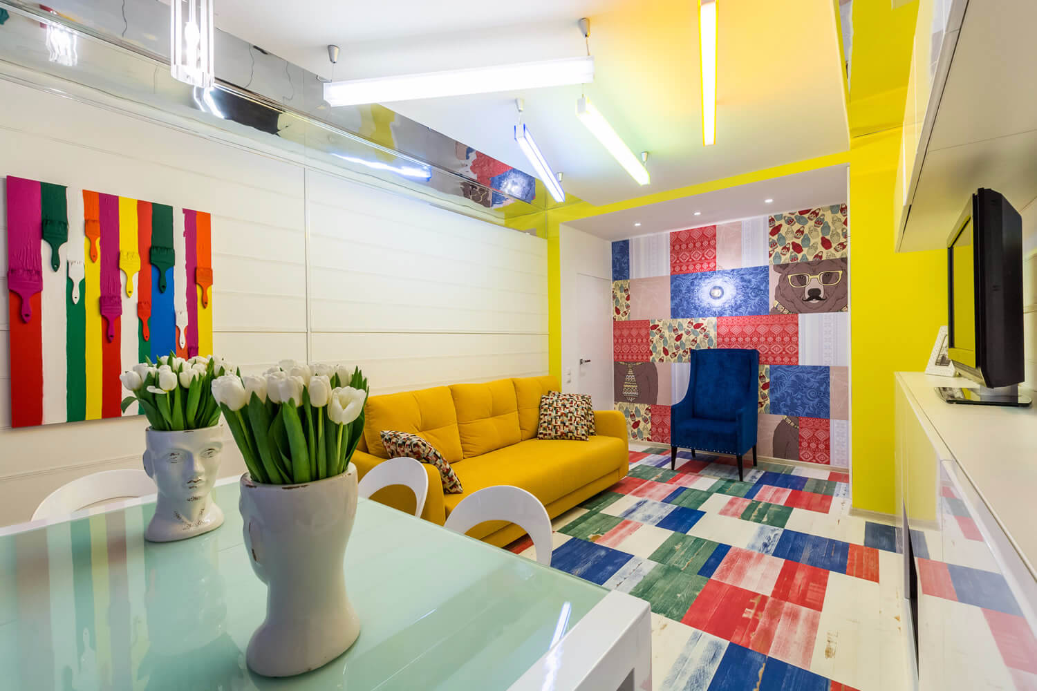 For the style of pop art is usually laid bright contrasting tiles of several colors.