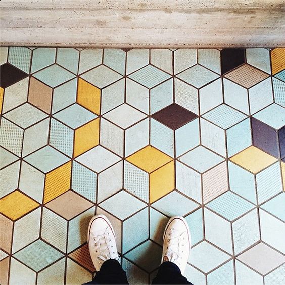 How does the colored floor tile look in the interior and how to fit it into the interior correctly?