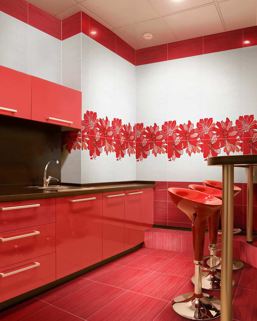 - Depending on the purpose of the room and your own preferences, you need to choose a tile covering. Remember that the matte tile is perfect for the bathroom, as it prevents wet feet from slipping, but it is not recommended to stack it in the kitchen, as it is hard to wash the rough surface. Gloss, on the contrary, will contribute to slip and can be extremely traumatic. But removing dirt from such a coating is much easier than from textured matte material.
