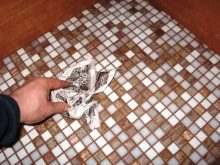 - It is impossible to achieve complete removal of the grout, on the surface there will still remain a thin sticky plaque, similar to a plastic one. White tiles need to be cleaned for a longer time so that it does not eventually acquire a yellowish tint.
