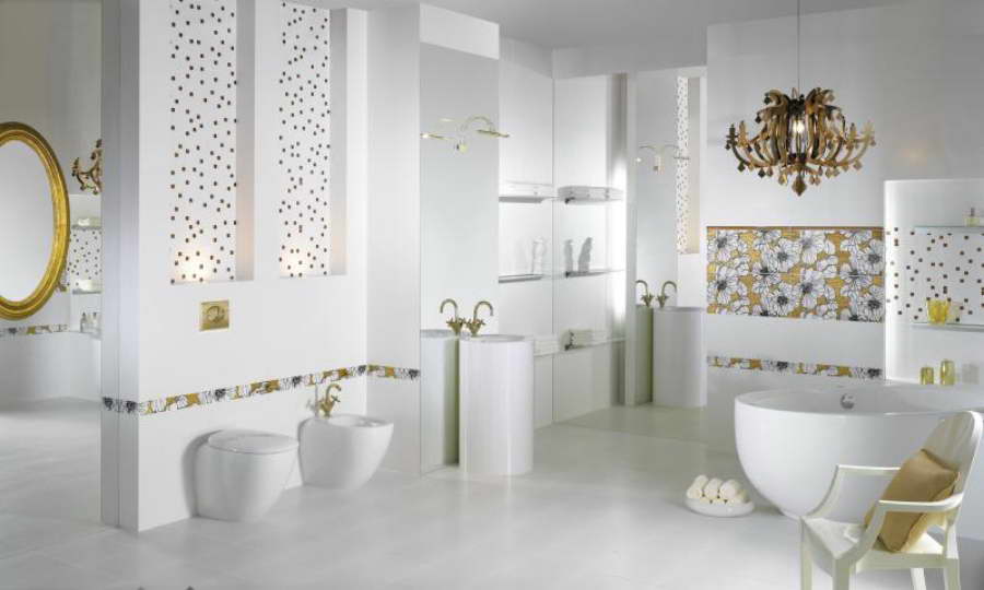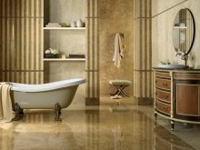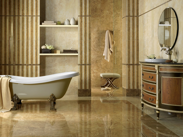 It is necessary to choose a glossy tile for a bathroom with care. Water and steam may make it too slippery. The best option would be to use glossy tiles on the walls, and matte - on the floor.