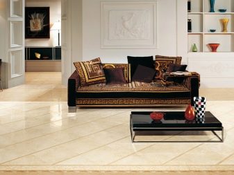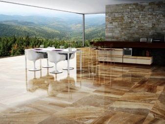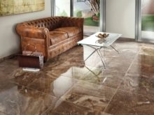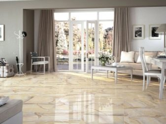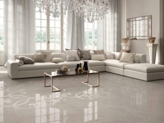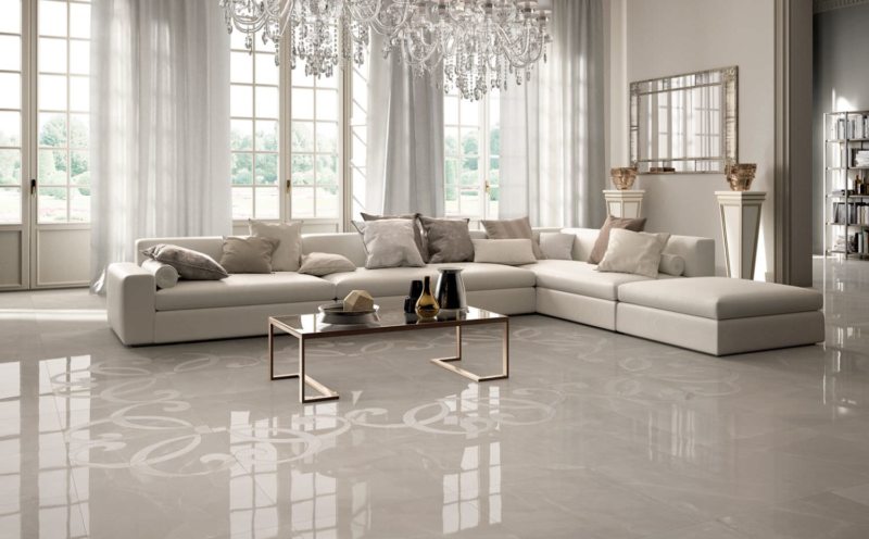 Floor tiles are durable and easy to clean. It is suitable for decoration of any premises, except, perhaps, the bedroom. In the kitchen and hallway, floor tiling will reduce the labor costs for cleaning, and the living room gloss will give respectability and solemnity.