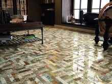The most suitable room for a glossy surface is a spacious hall designed for receiving guests. The glossy polishing of the floor will create the effect of a luxurious palace, and the design selected to match the overall decor will become an independent element of the decor.