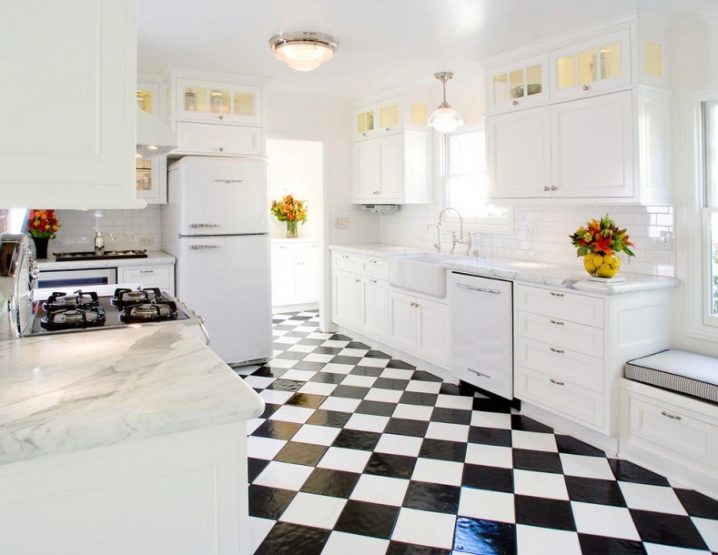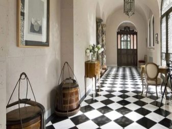 The combination of light and dark squares in a checkerboard pattern will allow you to create an original flooring design, which will be the main focus of the interior.