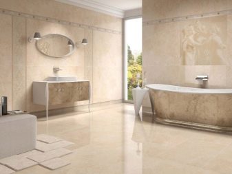 It is worth noting the fact that due to the vitreous coating glossy tiles can be slippery and traumatic in places of high humidity. From the point of view of security, for the bathroom and kitchen it is preferable to choose a matte material with a rough surface.