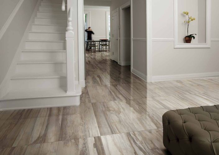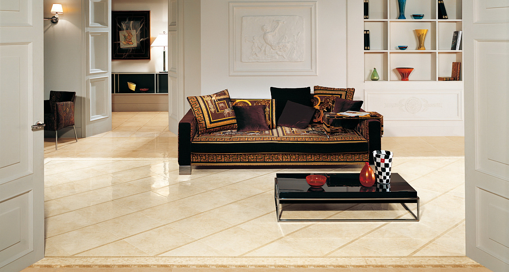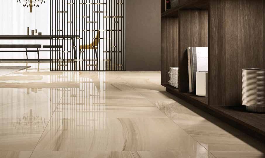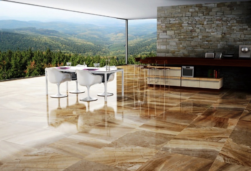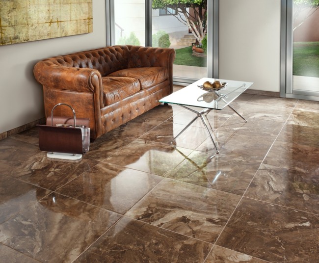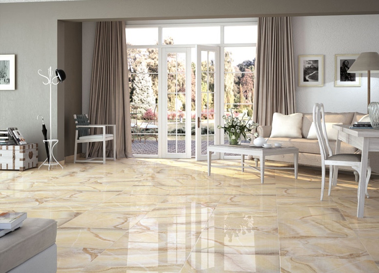 Glossy floor tiles in the interior of the house and apartment