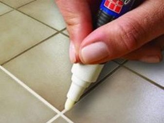 The best brands of such products - Snowball Edding 8200, inexpensive pencils are intended for all types of tiles and panels "Pufas", applied to the seams by hand with a brush, their remnants are easily removed from the surface of the tile.