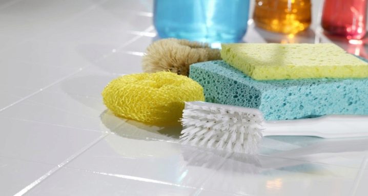 To clean the joints on the floor in the bathroom or in the kitchen, different household chemicals are used, sometimes not even intended for this purpose. According to professionals, in some cases, you can use the facilities for washing and bleaching material, detergent compositions for dishes, and cleaning sinks.
