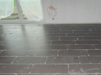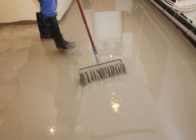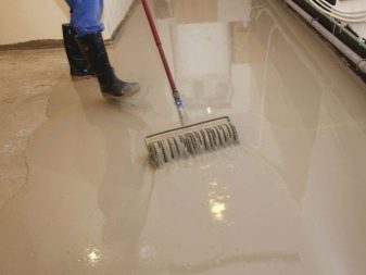 Then the floor is covered with a mixture and spread over the surface with a spatula. To remove air bubbles, the composition is aligned with a needle roller.. Drying lasts from 6 to 12 hours, but you can start work on tile laying only on the third day.