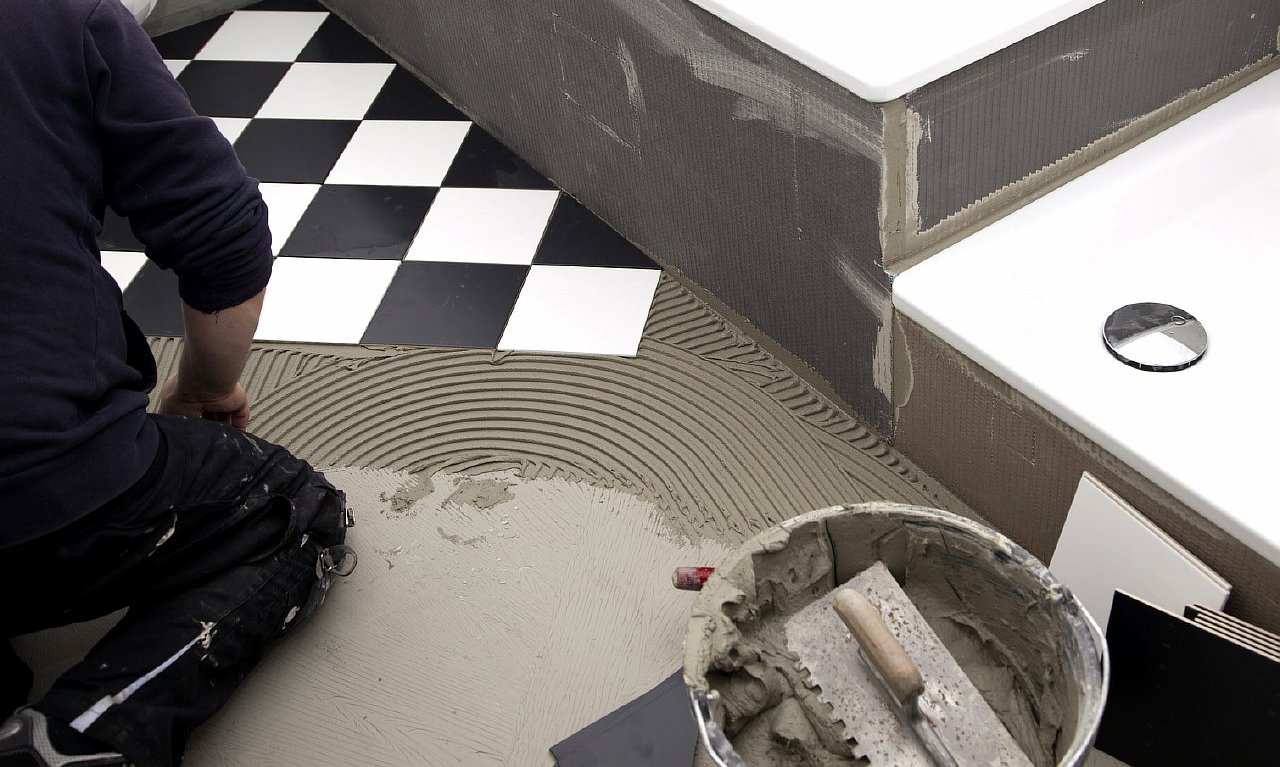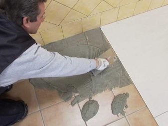 Further events can unfold in two scenarios. In one case, using a special, for such cases, glue is laid a new layer of tile. In another, with a curved surface, the floor is first leveled with leveling mixture and then proceed to the installation.