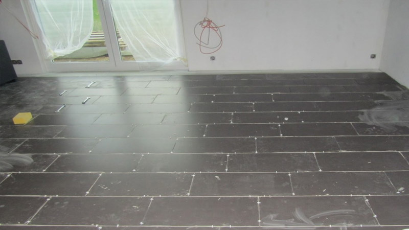 In order to secure the already laid material, it should be covered with a protective layer of plywood. After finishing laying the cuts and removing the plastic crosses, the tiles are left to dry until fully set. In this matter, you must clearly follow the instructions. It usually takes forty eight hours. At the very least there is a cleaning of the finished surface from building dirt.