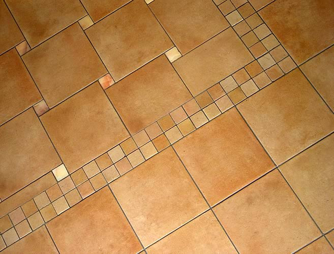 This is often used pattern in laying out the floor tile is also called "scrambling." This technique will add originality and a touch of history in the room. A great way to get away from monotony or hide small defects in the kitchen or in the hallway. For him, it is best to choose a monochromatic, rectangular, slightly less square tile.