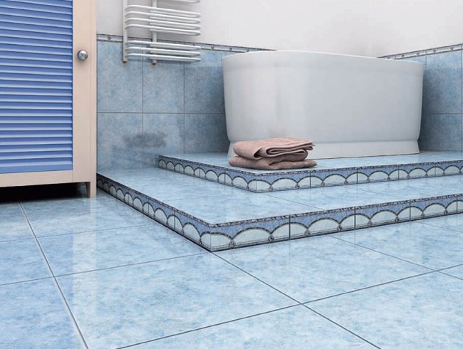 For the bath, a slope is envisaged so that water in case of contact with the tile flows down towards the door. It is better that the level of the floor was lower than in the room where the door goes and you must be equipped with a high threshold. These are the precautions against flooding the apartment.