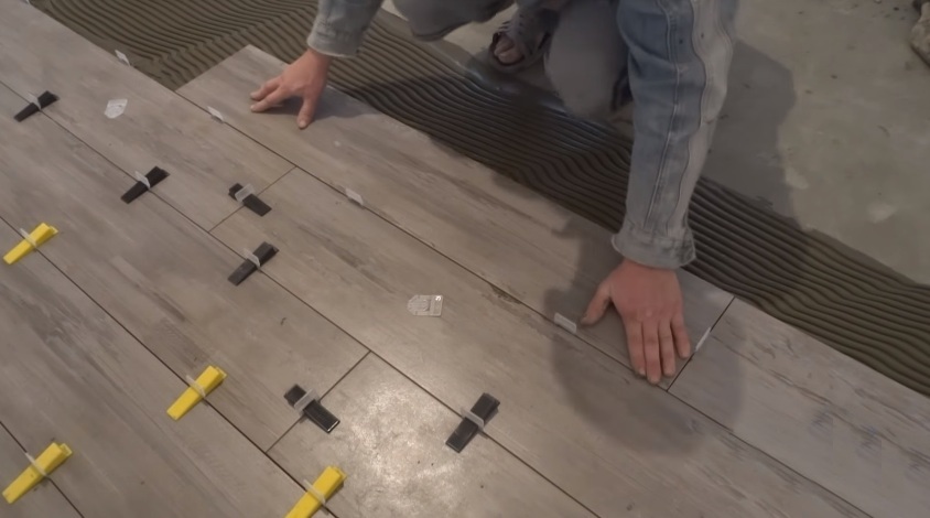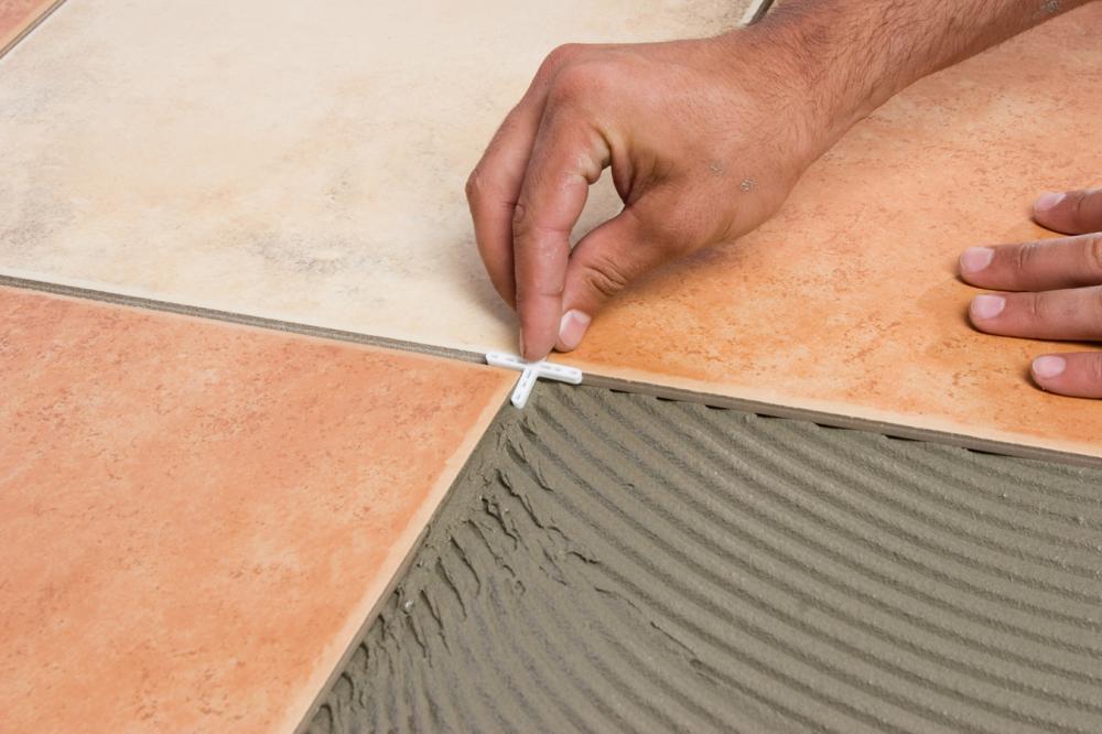 There must be a distance between the tiles. To make this distance the same, special plastic crosses are used.. Before laying each tile, you need to check the flatness of the surface. Such control will help to replace the amount of glue at an early stage.