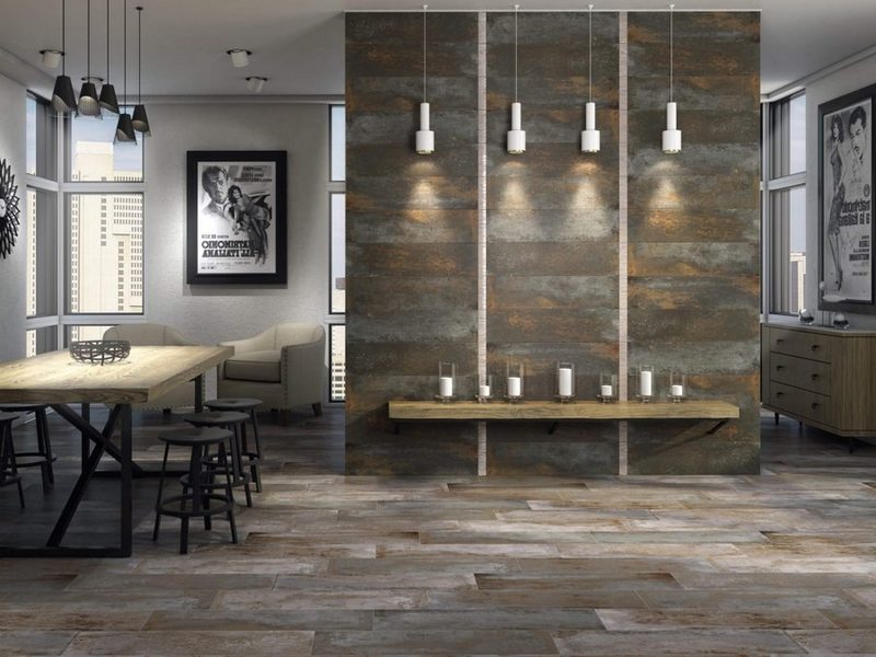 A significant advantage is its diversity and ability to imitate various natural structures: metal, leather, tree species, types of stone. For example, for the design of the kitchen space, ceramic parquet or a wood imitation pattern serves as a popular finish.