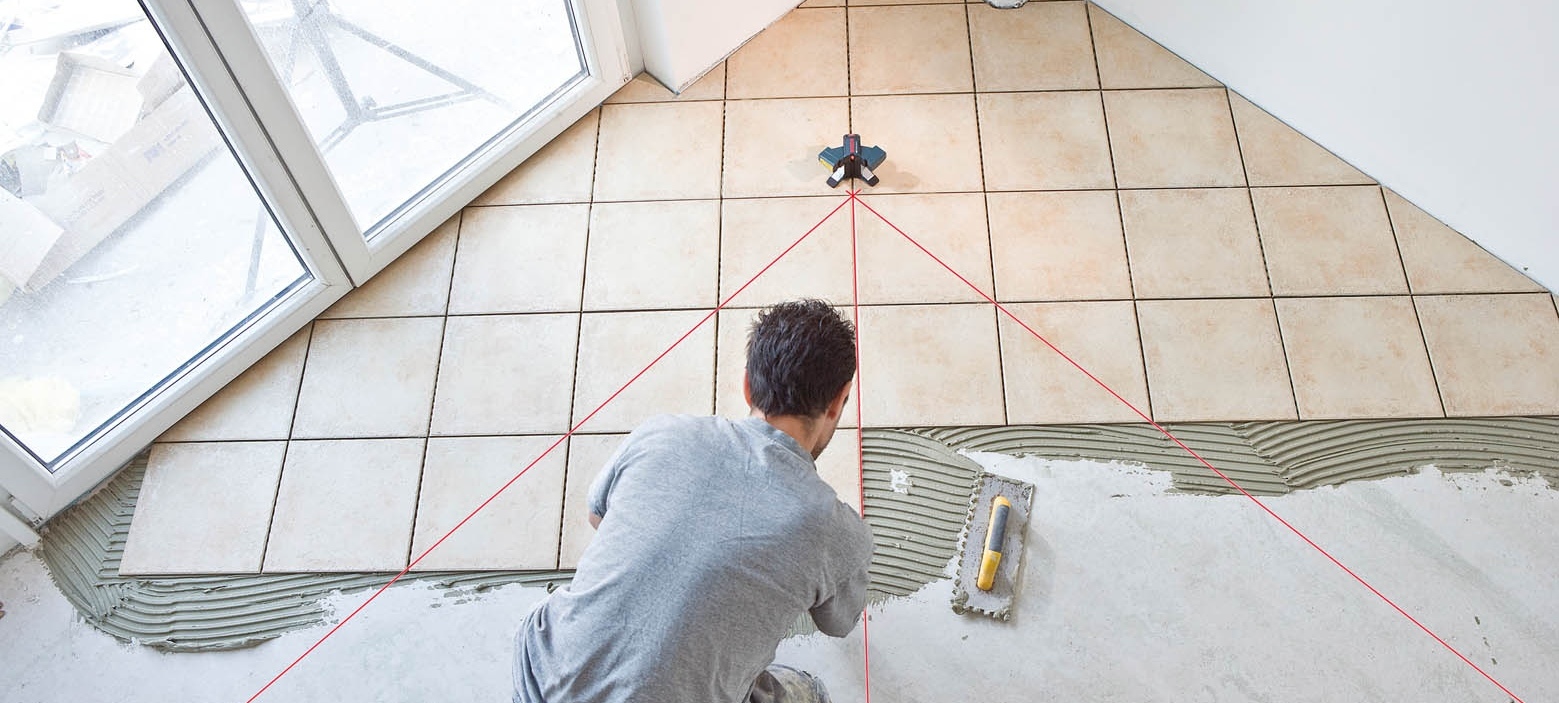 For laying floor tiles you will need a fishing line. It is indispensable when working in a large area. With the help of the molar line the very first tile is laid. Instead of fishing line you can purchase a laser level.