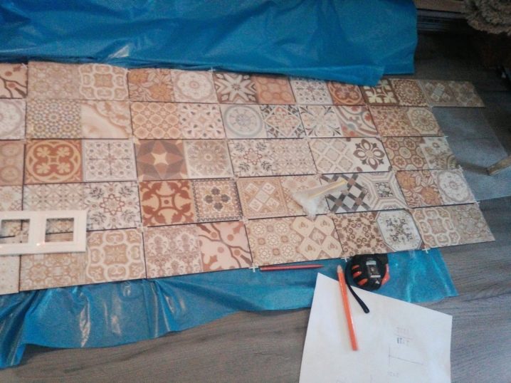 After completing all the work on the screed and waterproofing, you need to lay out some fragments of tile on the floor. This technique is particularly useful for those masters whose tiles have an ornament or a clear pattern.