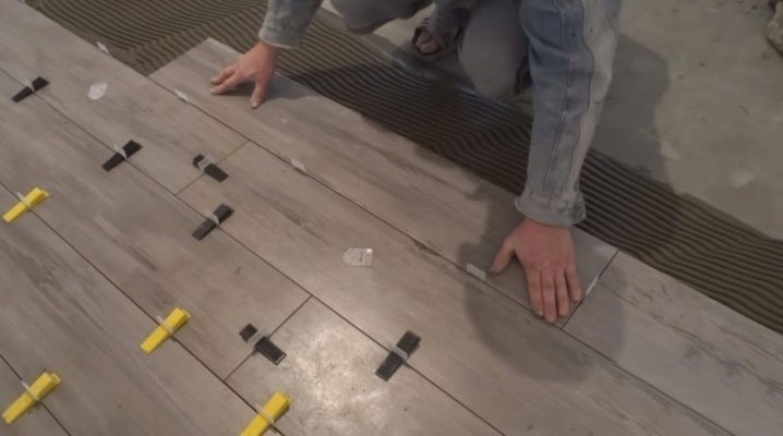 When laying, experts recommend applying a glue base with a notched trowel on the floor and the tile itself. The strips should be perpendicular to each other: with this technique, optimum grip is achieved.