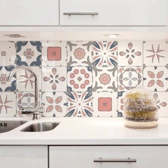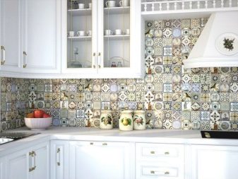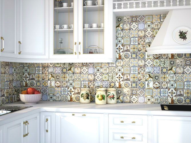 One of the modern trends in the design of ceramics is the imitation of textiles, which usually goes together with a printed floral pattern. This tile is the best for the kitchen in the country style.