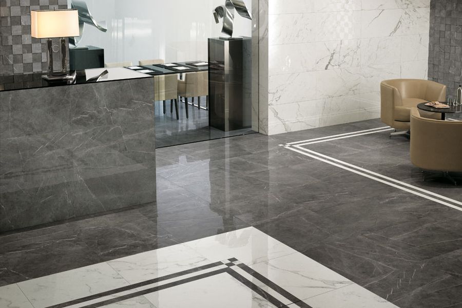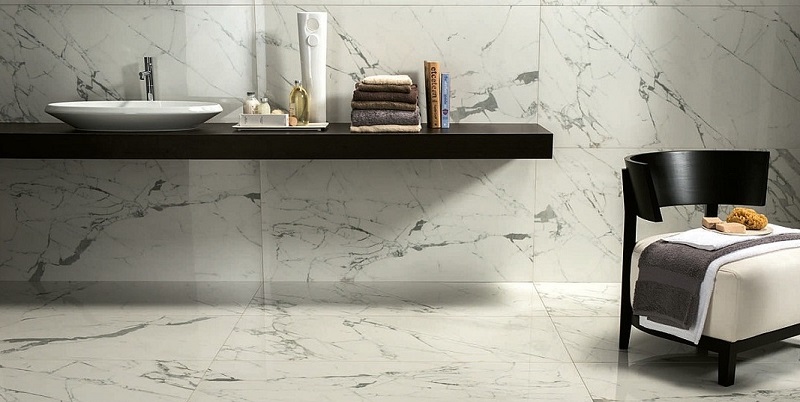 Polished porcelain looks just amazing. Firstly, it glitters and perfectly imitates the texture of marble or natural stone, and secondly, it has an incredible depth of color.