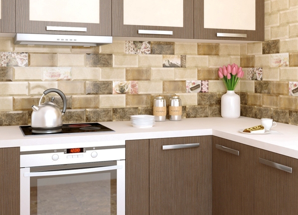 For decoration of kitchen walls, tiles with low strength will be suitable, but at the same time it should be resistant to acids and alkali. It is best to choose products with a smooth surface - they are easier to maintain.