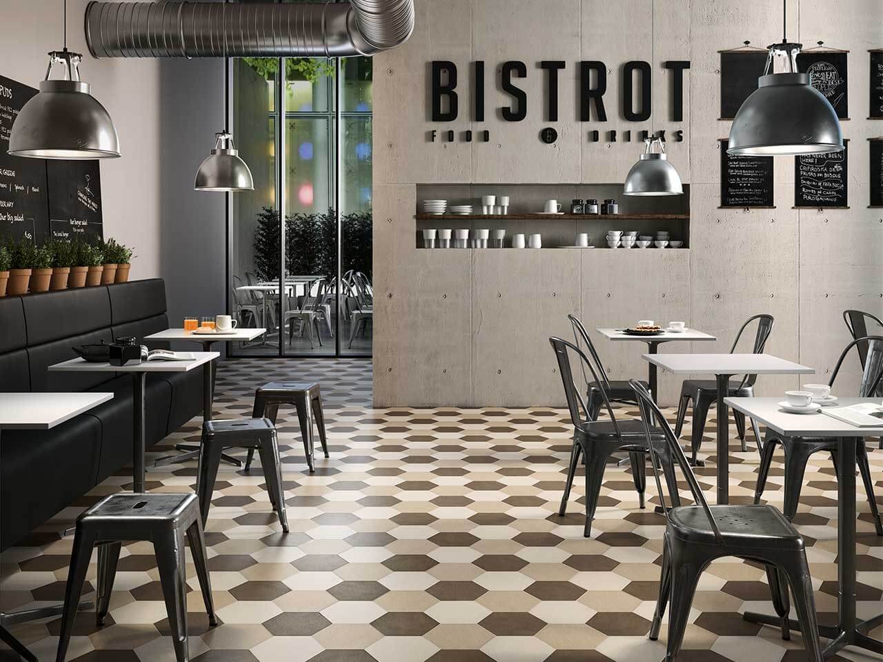 Often, ceramic tiles are used for cladding the walls and floors of cafes, restaurants, shopping centers, hotels, the lobby of theaters and concert halls. Glazed products with enhanced strength properties are commonly used. Often in such places you can find designer ceramics or products from limited editions.