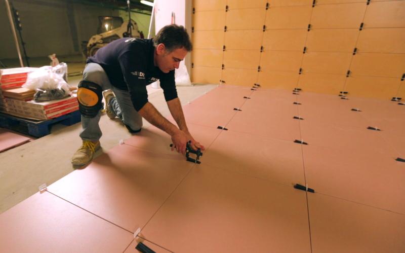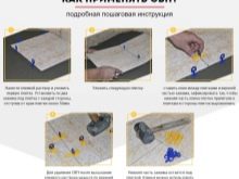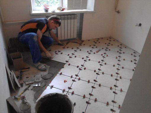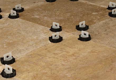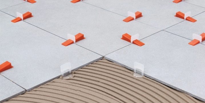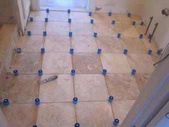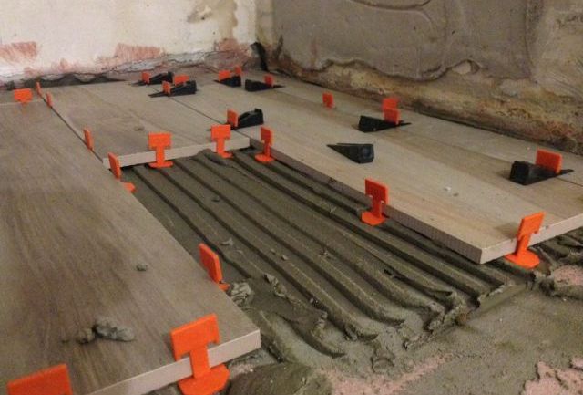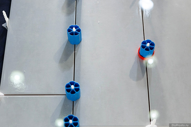 - Thanks to the installation of leveling tiles, the adhesive mortar is distributed evenly. This is important if the surface of the base of the floor has minor irregularities.