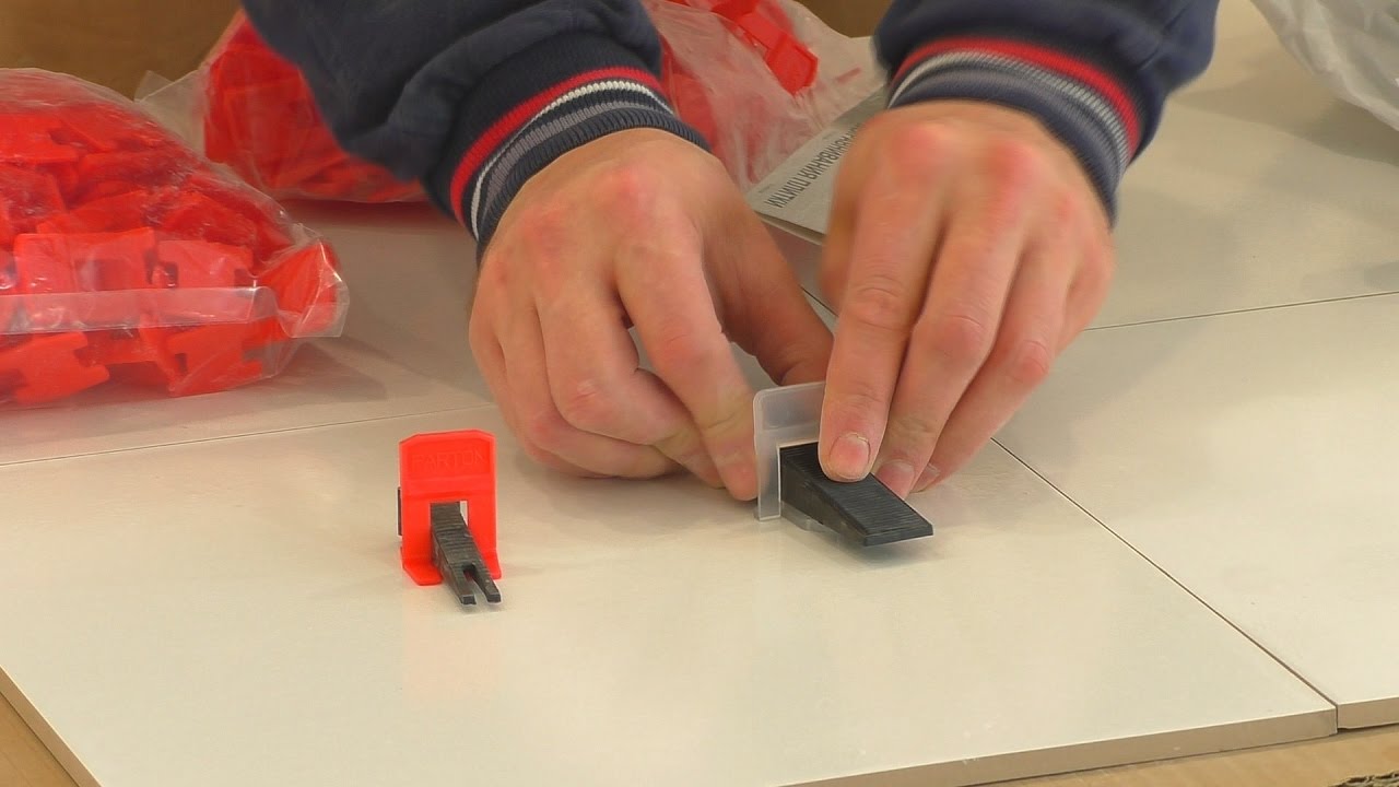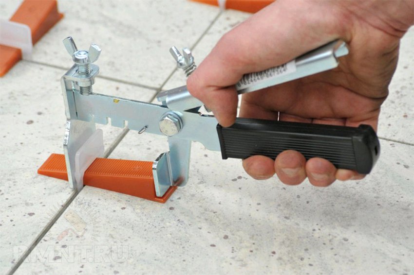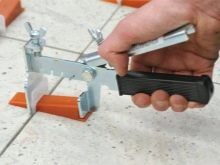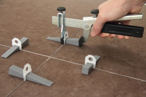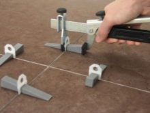 Leveling systems with fixing tools can install tiles of a wide range of thickness (from 3 mm to 3 cm). The use of such a system is possible only with the help of an additional tool. Structures with a screw tensioner are stiffened with a steel pin with a screwdriver.