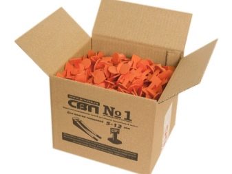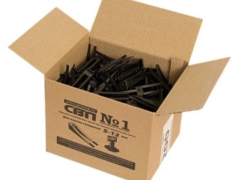 The alignment design of the first type consists of two plastic elements. One of them has the appearance of a wedge with teeth. The second is in the form of a key with an oval or polygonal base (it is a clip). The clamp is a T-shaped plastic element in which the upper part breaks off easily. This item is designed for single use. Wedge is a reusable mechanism..