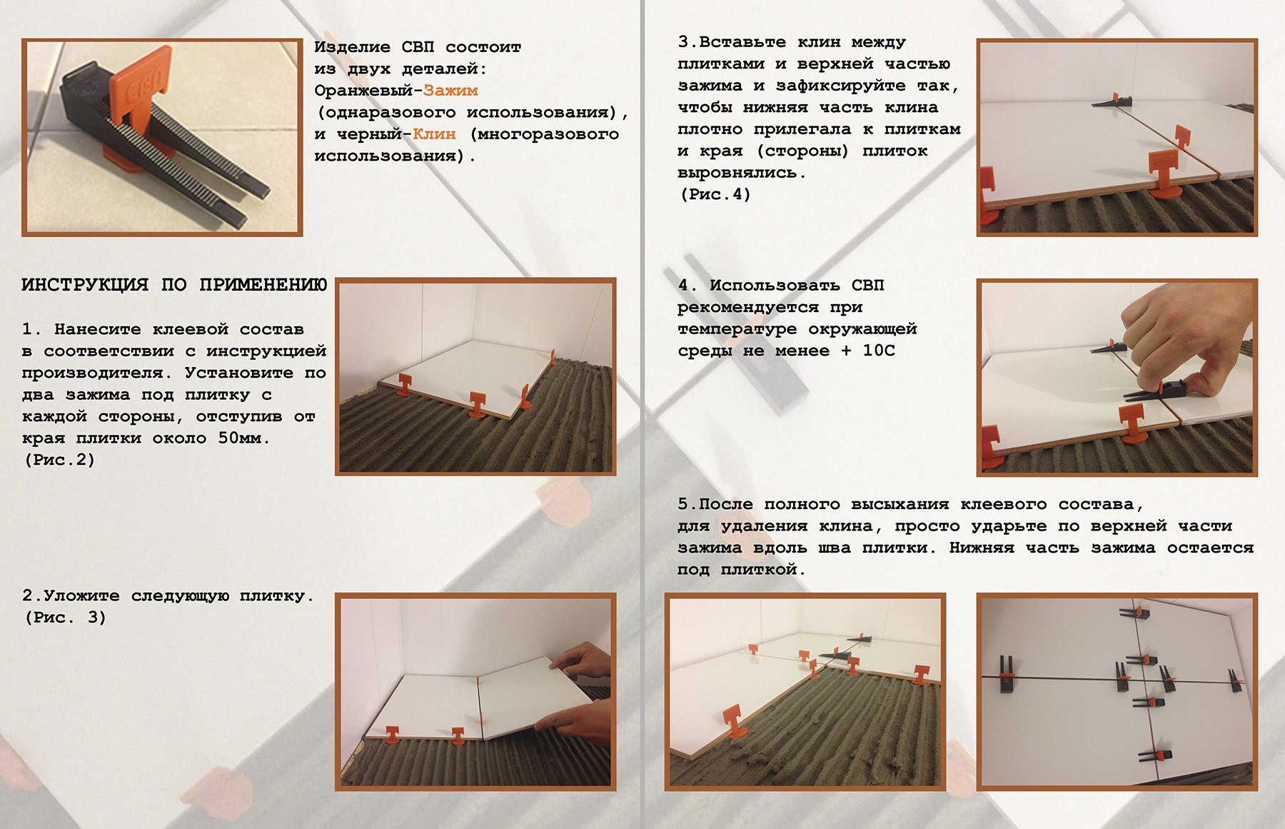 SVP is a structure used to quickly level the surface when laying ceramic and tile coatings. It can also be used for laying porcelain stoneware (with a thickness of not more than 20 mm).